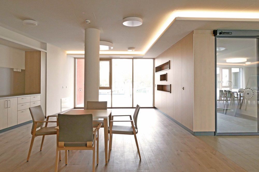Der Zubau des Pflege- und Betreuungszentrums Melk umfasst drei Wohngruppen für 44 Bewohner/innen. Davon entfallen 15 Plätze auf Hospiz- und Palliativpflege, 15 Plätze auf Wachkoma und Intensivpflege und 14 Plätze auf Übergangs- und Kurzzeitpflege.