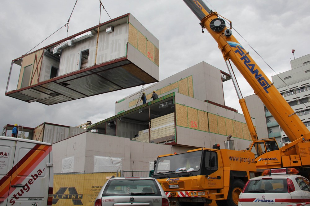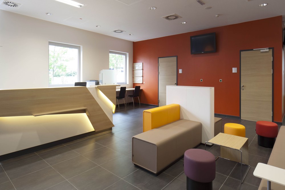 Die gegenüber des derzeitigen Haupteinganges des UK St. Pölten situierte Blutbank wurde in Raumzellenbauweise 3-geschoßig hergestellt und beinhaltet im Erdgeschoß die für die Besucher und Spender relevanten Funktionen sowie Annahme bzw. Abgabe der Depots und die dafür erforderlichen Laborbereiche.