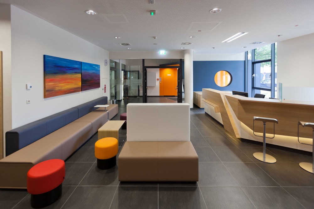In den Obergeschoßen sind alle weiteren Laborbereiche, Reinräume sowie die administrativ erforderlichen Funktionen untergebracht.