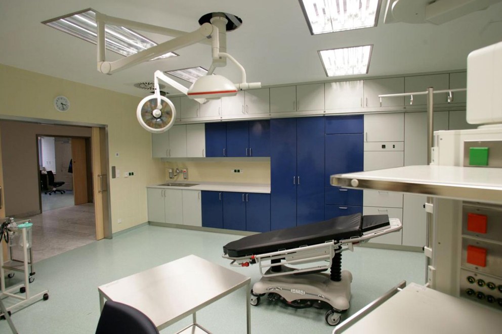 Es beinhaltet neben dem derzeitigen neuen Haupteingang mit der entsprechenden Infrastruktur (Information, Cafe, Beginn der späteren Gesundheits-Mall) ein modernst ausgestattetes Kardiologiezentrum, Notfallaufnahmebereich, Zentralambulanzen, Herzkatheter, 2 Intensivstationen ( 24 Betten) und eine Zentral-OP Gruppe (12 Einheiten).