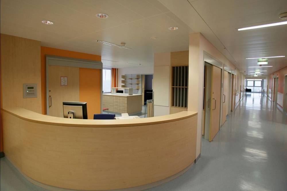 Das Haus B ist nach Abbruch des Ostflügels des ehemaligen Pav. II im direkten Anschluss an das seit 1975 bestehende Haus A entstanden.