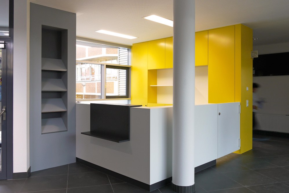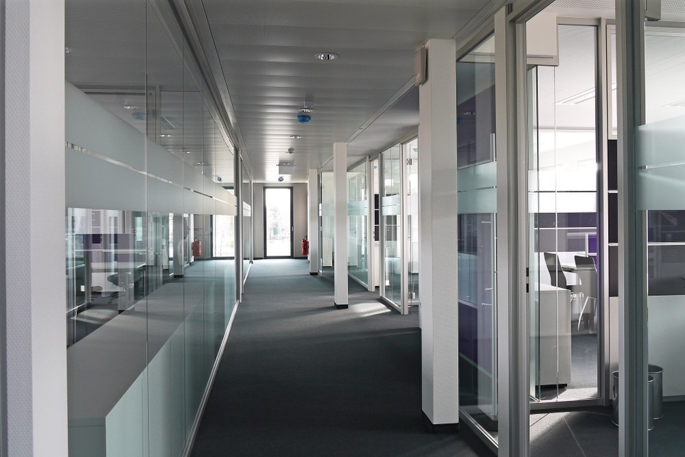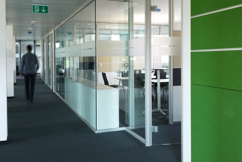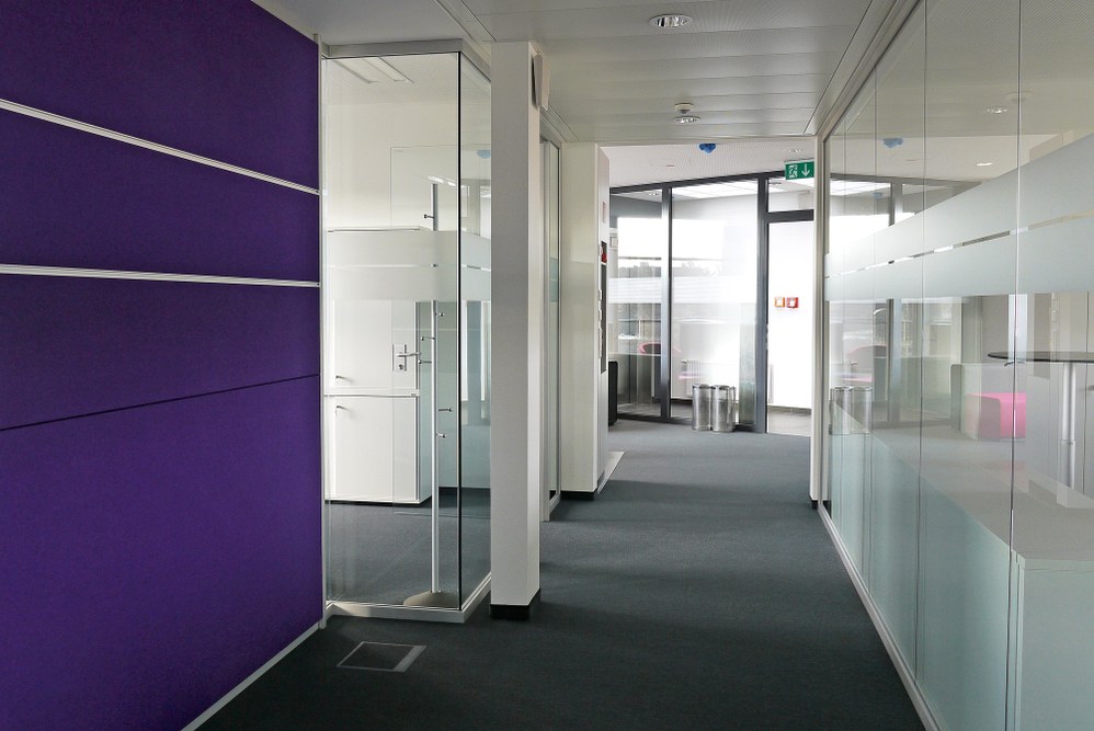 Das vorhandene Stiegenhaus wurde um einen behindertengerechten Aufzug ergänzt. Durch die Verwendung von Glastrennwänden wurde eine offene und lichtdurchflutete Büro-Atmosphäre geschaffen.