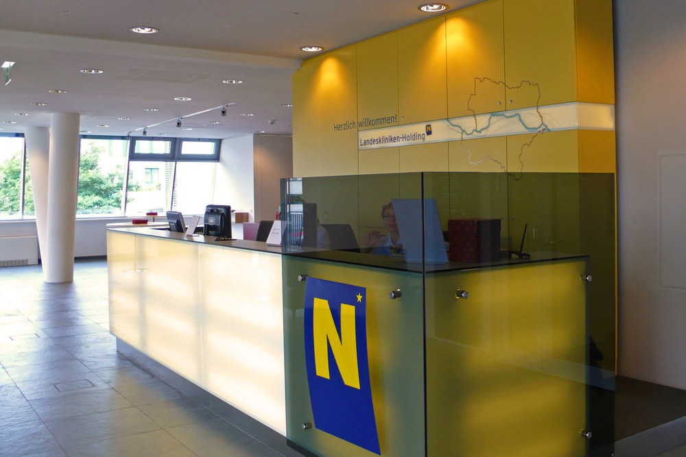 Konzeptentwicklung einer offenen Bürostruktur für die Niederösterreichische Landeskliniken-Holding am neuen Standort in St. Pölten in einem bestehenden Gebäude von Architekt Ernst H. Huss.