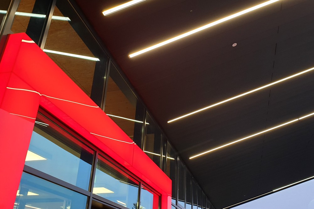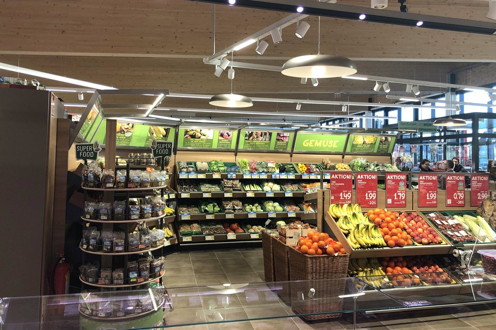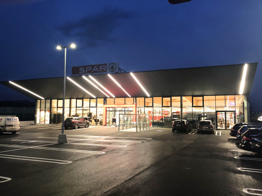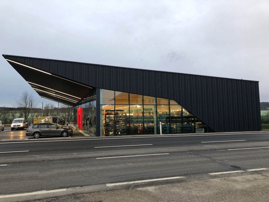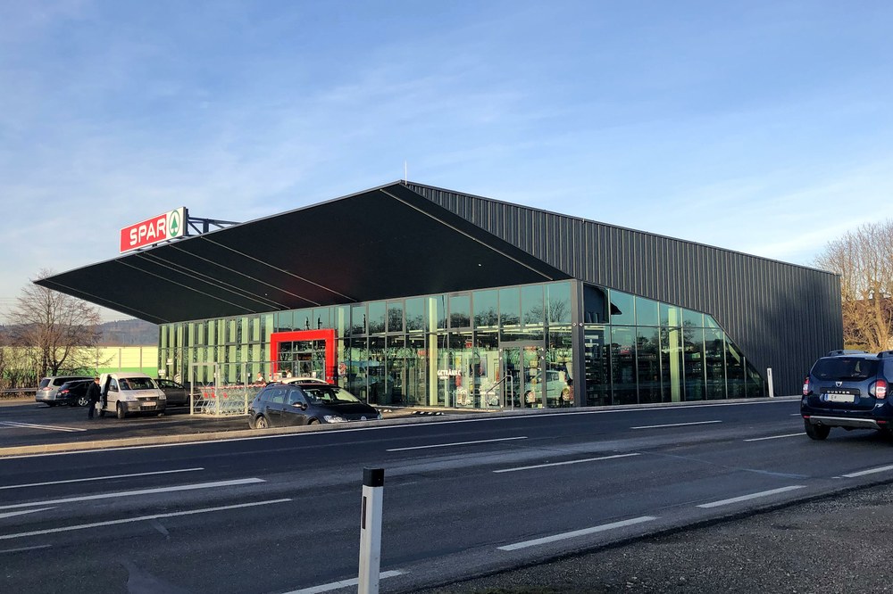 Charakteristisches Merkmal des in St.Georgen/Ybbsfelde errichteten Sparmarktes ist das 7,5m weit auskragende Dach, das in fließender Form in die südseitige Fassade übergeht. Die Fassade besticht durch die unterschiedlich breiten Stege des Trapezbleches, die den Strichcode der einzelnen Waren wiederspiegeln soll. Die klare Ablesbarkeit der einzelnen Funktionsbereiche wird über die geradlinige Architektur erreicht.