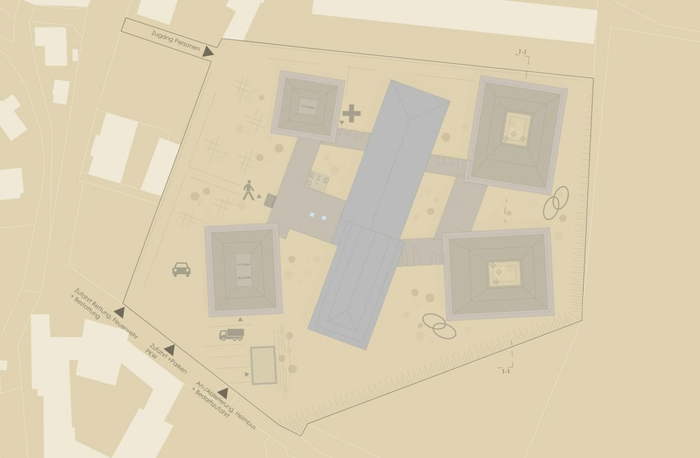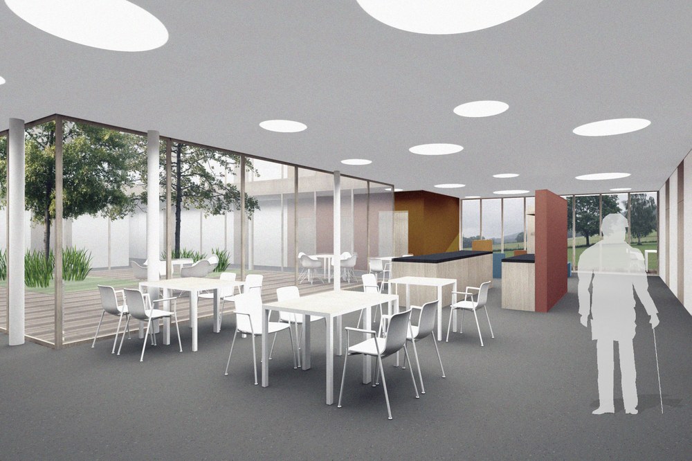 Die bestehenden Objekte werden in dieses System integriert, um so ein Gesamtkonzept in Bezug auf die Funktion, Philosophie als auch der gestalterischen Ausführung des gesamten Pflegeheims zu erreichen.